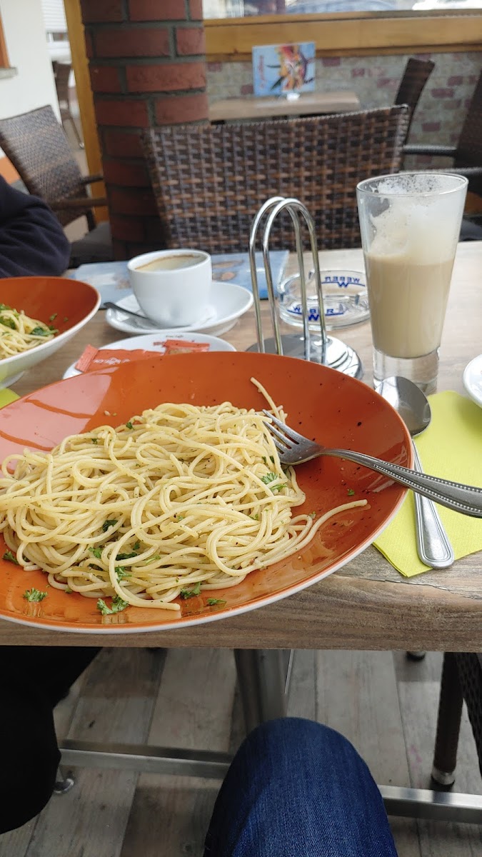 One of the standout dishes at La Gelateria Da Marcello is the Erdbeerbecher, a delicious and refreshing strawberry sundae that is perfect for those who love fruity treats. Paired with rich ice cream, this dish is a favorite among regulars. For a savory option, the Spaghetti Aglio E Olio adds a little twist to the menu with its garlic-infused pasta - an excellent choice if you’re craving something simple yet flavorful.